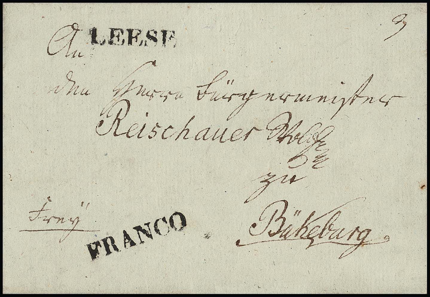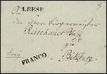 "Leese", 1809, nebst "FRANCO", je klare westphäl. L1 auf kleinem Kabinettbrief nach Bückeburg, selten, ArGe 450,-