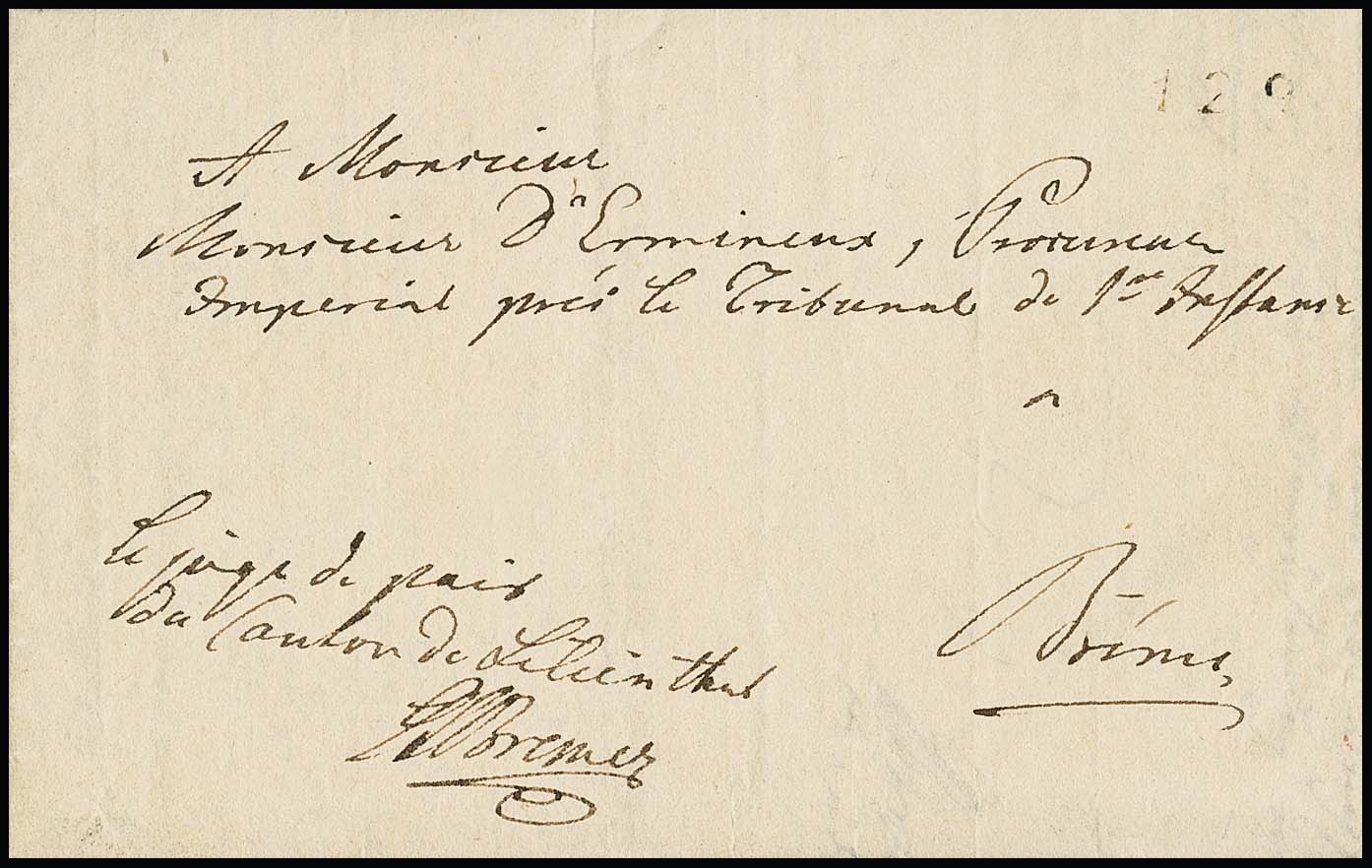 "Lilienthal", 1812, 4.7., kleiner Kabinettbrief mit sauberem alleinigem Schrägschrift-L1 "129" (als Departementstempel-Vorläufer) nach Bremen, ein sehr seltenes Kuriosum mit rs. franz. Dienstsiegel