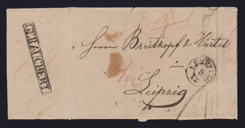 "Lüneburg", 1831, K2 nebst vs. Desinfektions-Ra1 "GERÄUCHERT" auf Prachtbrief nach Leipzig (Ränder teils gebrochen)