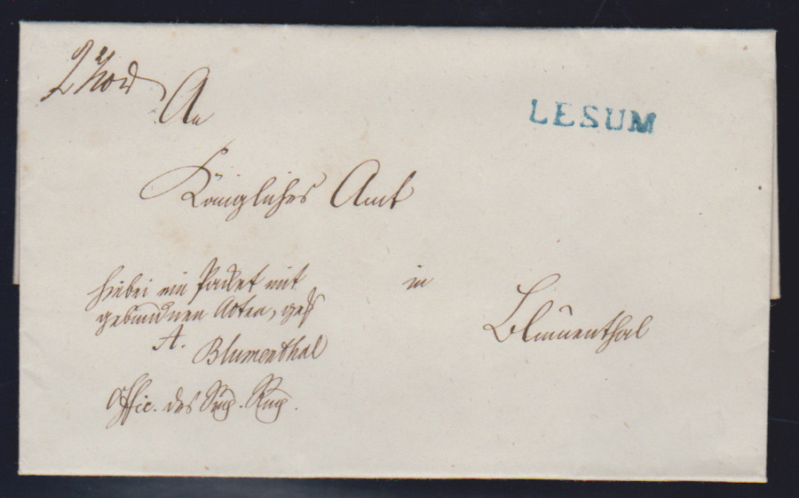 "Lüneburg 22. Apr.", 1811, seltener westphäl. L1 auf Paketbrief (innen Datumsfahne) aus Huppelse nach Böhme (bei Walsrode), hs. "frey bis Lüneburg", ArGe 06, Feuser 2132-4, 400,-