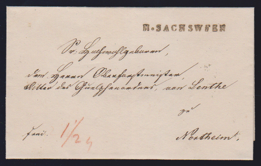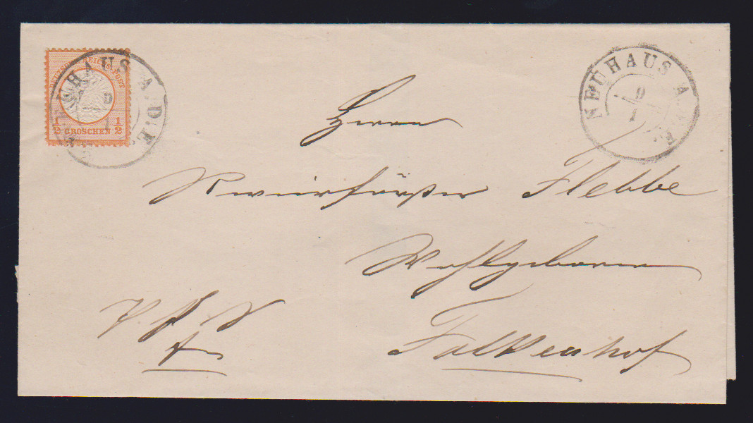 "Neuhaus a.d.E.", nachverw. K2 auf Brief mit Einzelfrankatur 1/2 Gr. gr. Brustschild in den eigenen Landbezirk