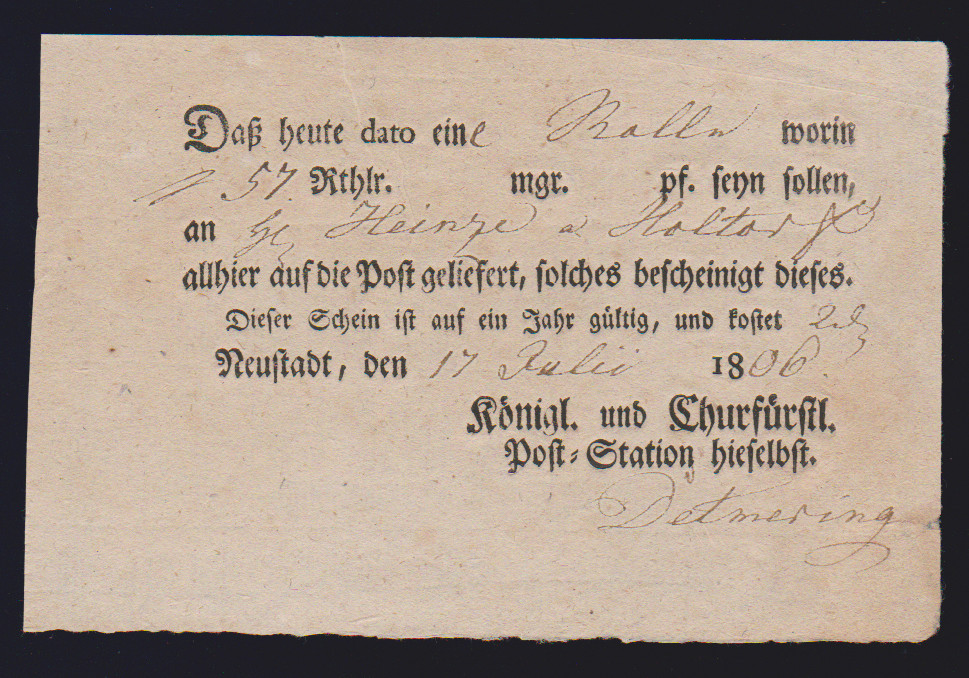 "Neustadt", 1766-1827, sechs seltene Ortsdruck-Postscheine