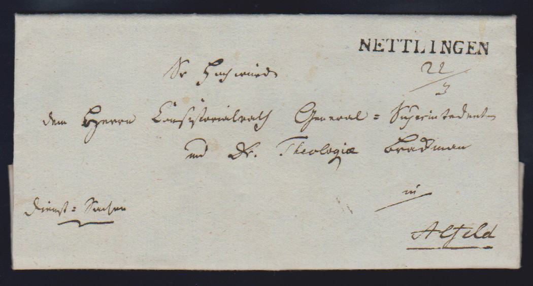 "Nettlingen", 1826, L1 klar auf Luxusbrief nach Alfeld, sowie auf Briefhülle nach Bodenteich