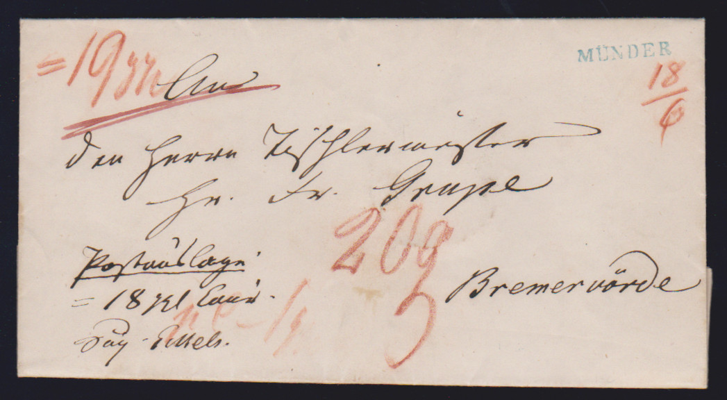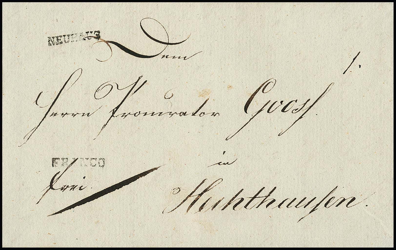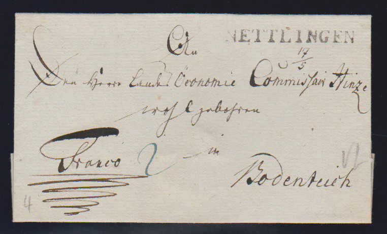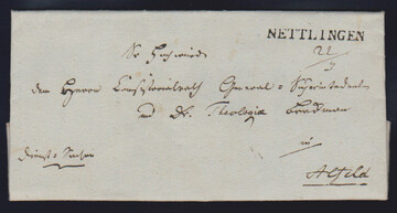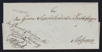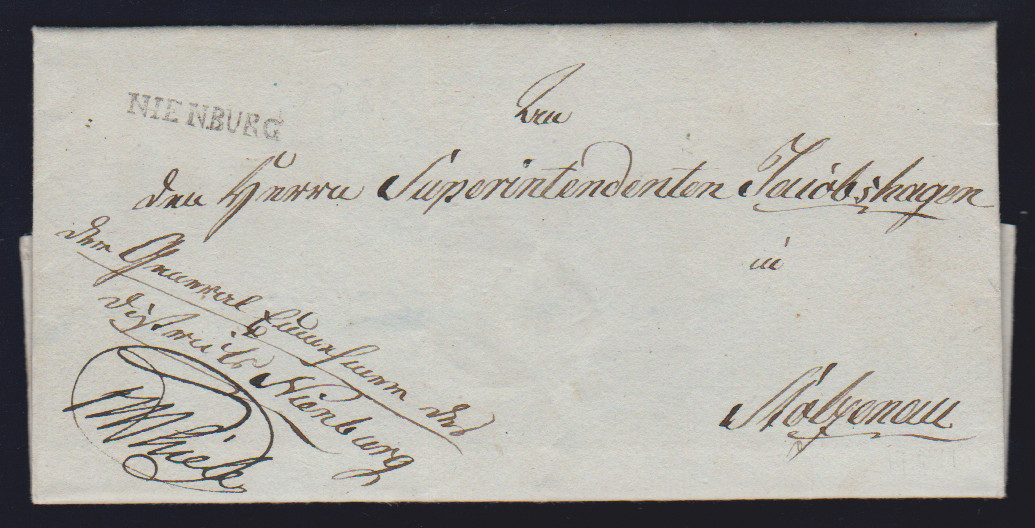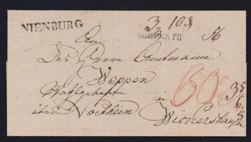 "Nienburg", 1809, 27.2., klarer L1 nebst L1 "HANNOVER P.H." (= "par Hildesheim") auf Brief aus Lichtrup nach Nickershausen (innen Datumsfahne), ein seltener Brief aus der Slg. Kampczyk, Feuser Nr. 359, 800,-