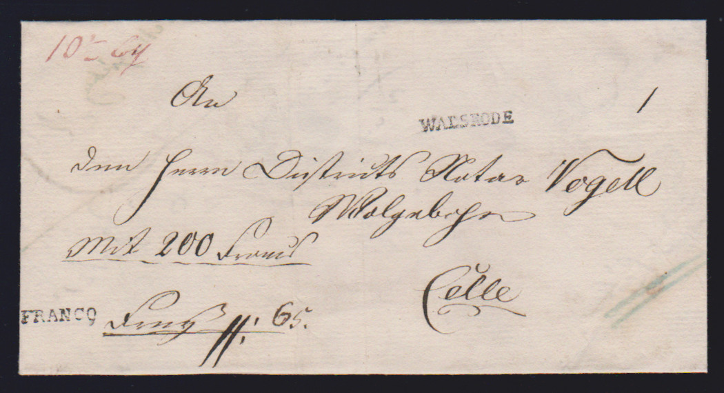 "Walsrode", 1811, kleiner L1 (einmal mit L1 "FRANCO") auf zwei Wertbriefen nach Celle, seltene Briefe