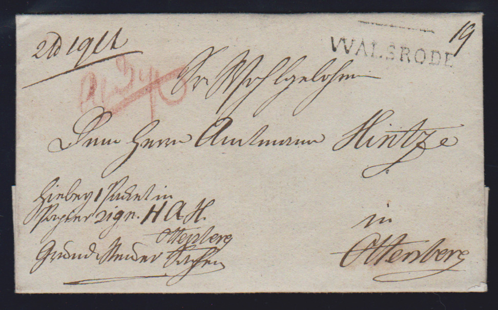 "Walsrode", 1813, schwarzer L2 "129 WALSRODE" auf Ortsbrief, selten