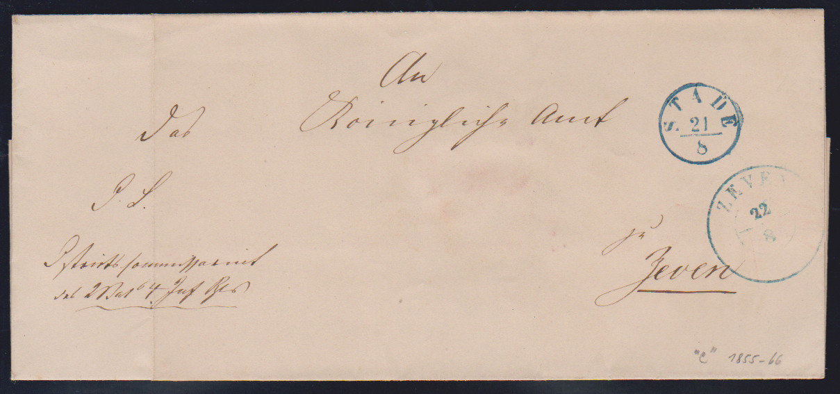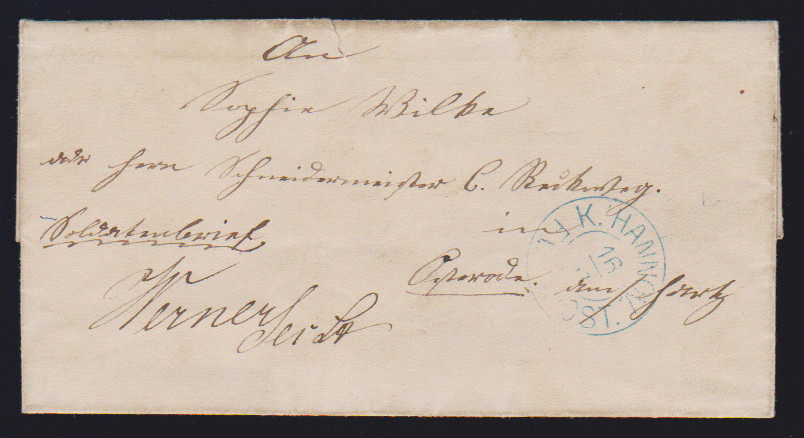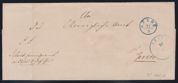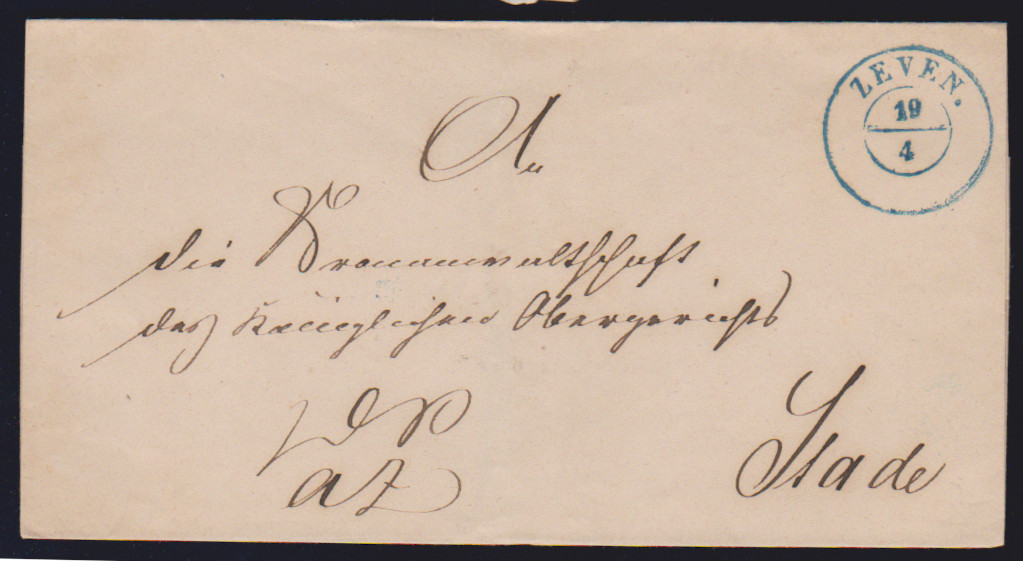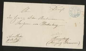 Feldpost, (1864), "ALTONA", K1 nebst blauem K2 "HANNOV. FELDPOST" auf Brief an das hann. Feldpostamt ("Postsachen") nach Hamburg und Altona, sign. Grobe