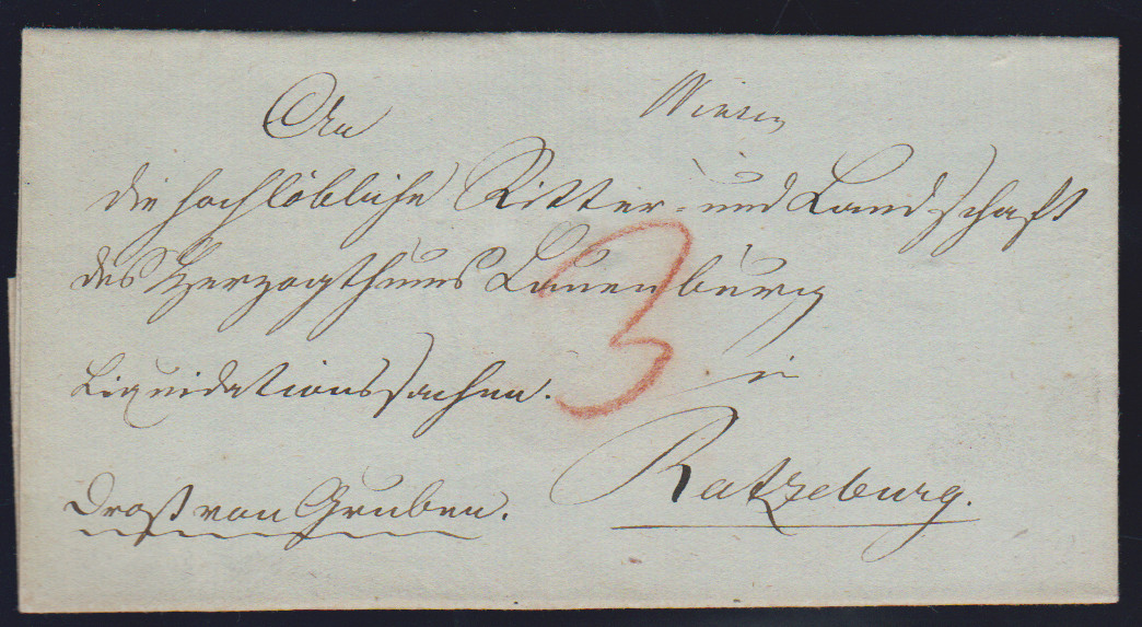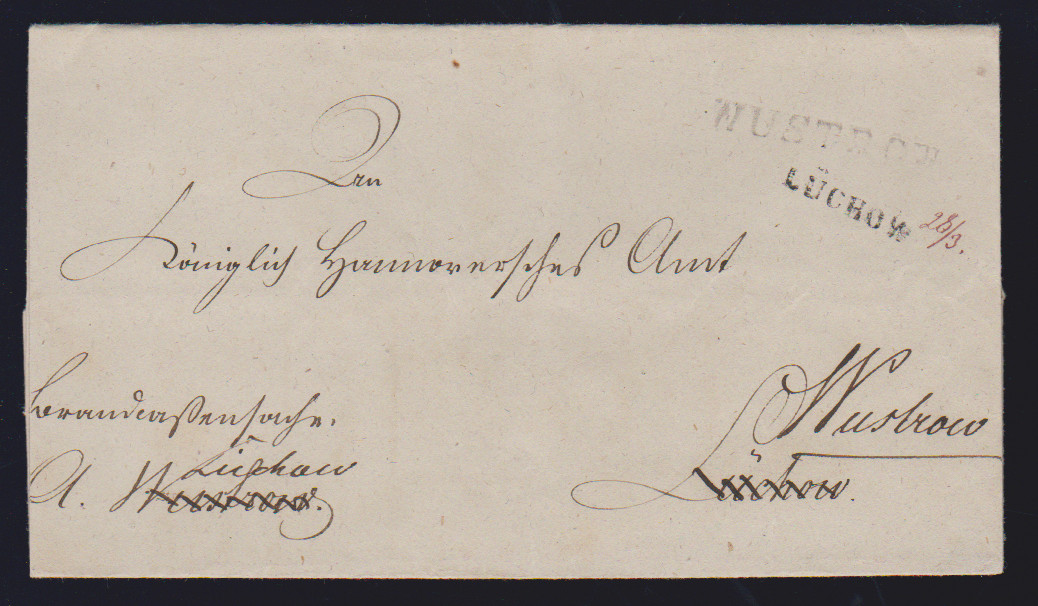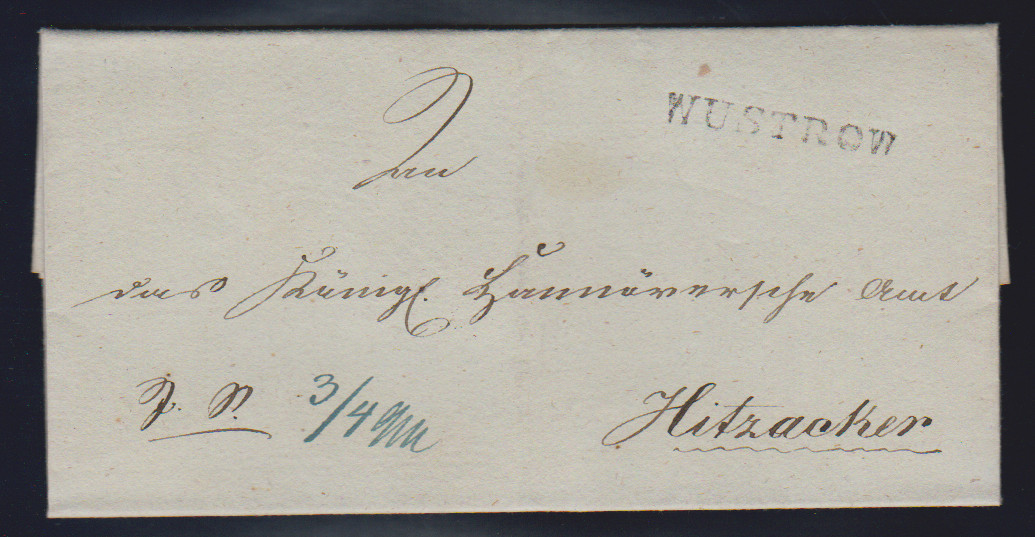 "Wustrow", ca. 1830-1854, vier Briefe und ein Postschein