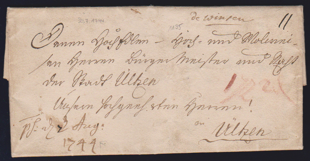 "Winsen a.d.L.", 1744-1867, 11 Briefe und sieben Postscheine
