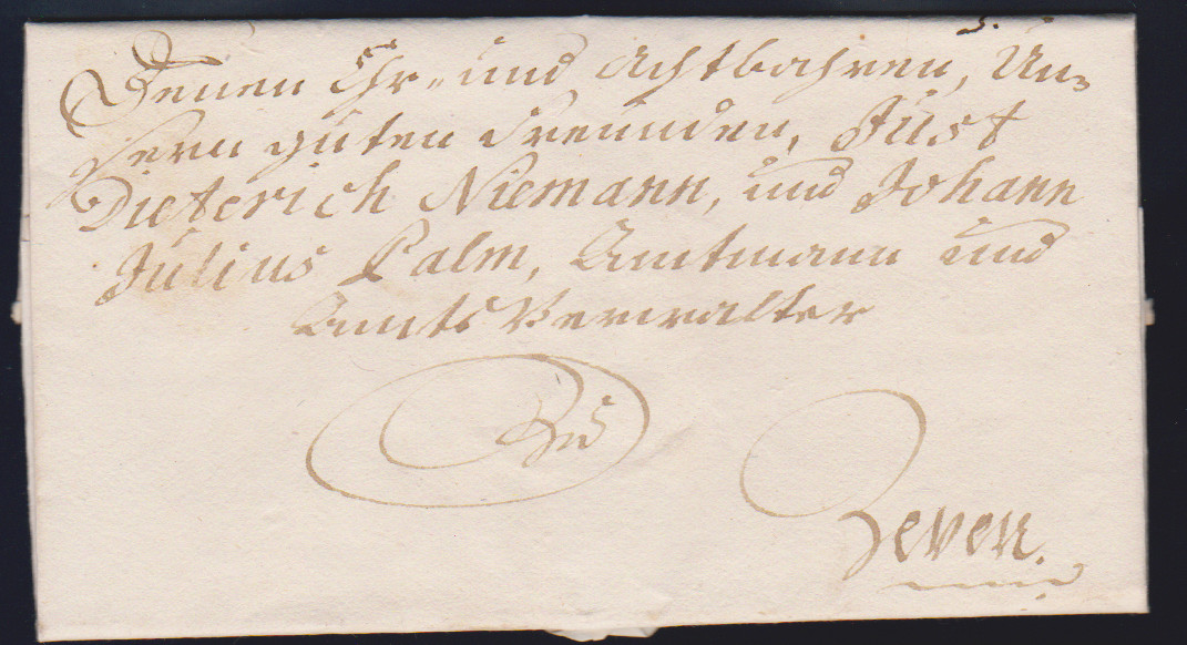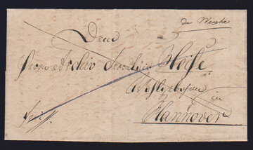 "Weyhe", 1812, "DE WEYHE" hs. Aufgabe der Briefsammlung auf Pracht-Briefhülle nach Hannover (innen Datumsfahne)