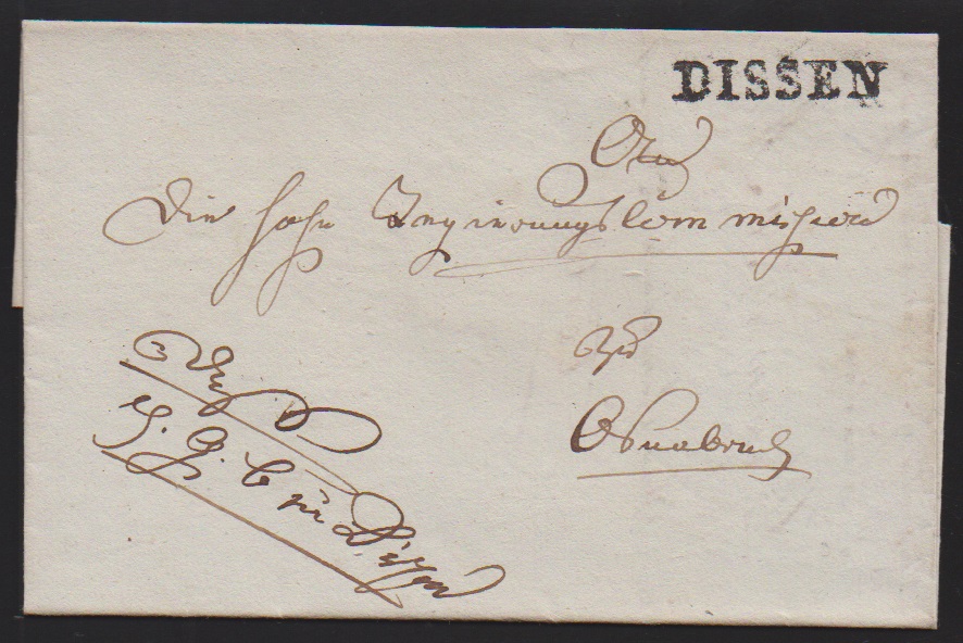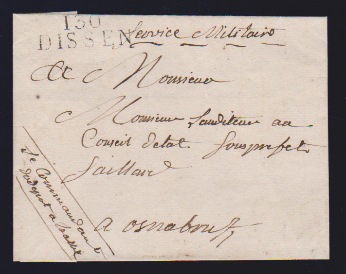"Dissen", (1812), klarer L2 "130 DISSEN" auf Militärbrief (Hülle) nach Osnabrück, Feuser 400,-