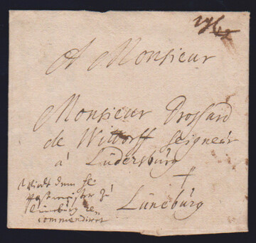 "Celle", 1689, kleiner Prachtbrief nach Lüneburg, hs. Taxe und "Wirdt dem Hr. Postmeister zu Lüneburg recommandirt", selten