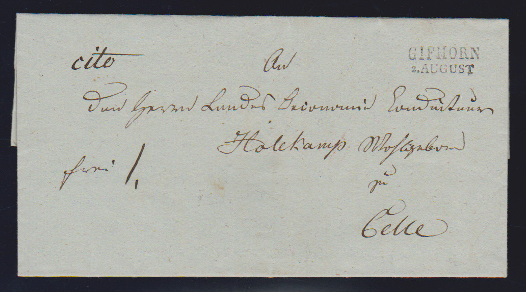 "Gifhorn", 1840, L1, ArGe 04 in zwei Typen, einmal mit Datums-L1, auf zwei Kabinettbriefen (eine Hülle) nach Artlenburg bzw. Celle