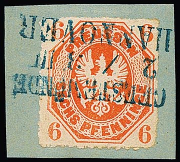 "Geestemünde-Hannover", voller nachverwendeter blauer Zug-L3 auf Kabinettbriefstück Preußen 6 Pfge. in guter orangeroter Nuance