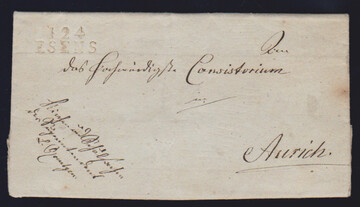 "Esens", 1811/1813, "124 ESENS", "P.124.P. ESENS", je saubere L2 auf zwei Prachtbriefen nach Aurich