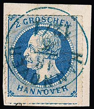 "Hannover", der seltene späte Grotesk-K1 mit großer Uhrzeit klar und zentrisch auf Briefstück mit 2 Gr. blau