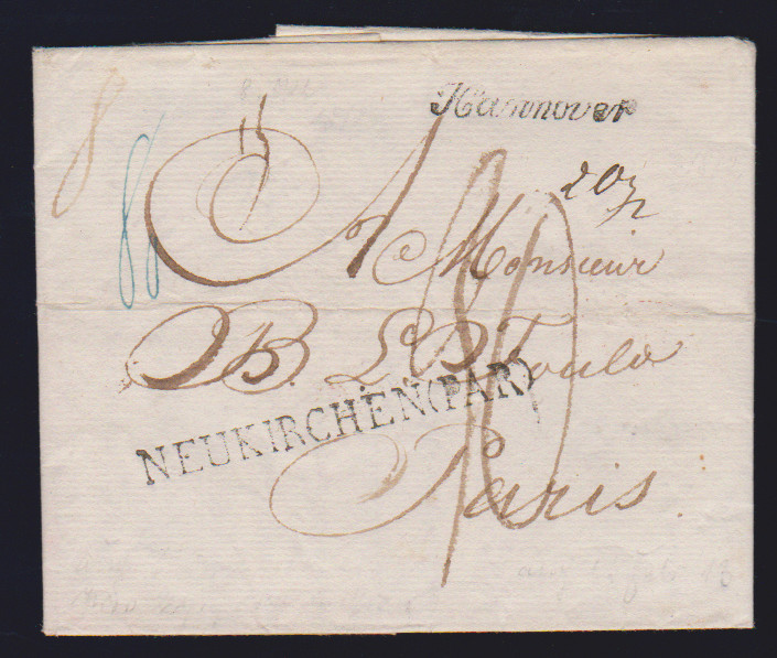 "Hannover", 1812, klarer Schreibschrift-L1 nebst L1 "Neukirchen (Par)" auf Prachtbrief nach Paris