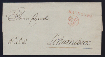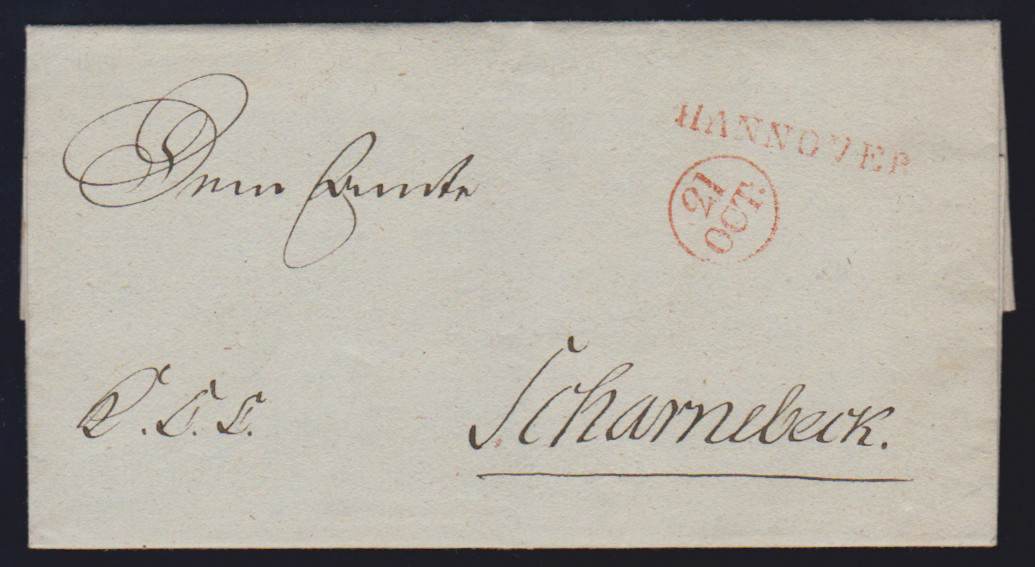 "Hannover", 1814, 19.10., roter L1 nebst Datums-K1 auf Kabinettbrief nach Scharmbeck (gedruckter Inhalt), ArGe 14
