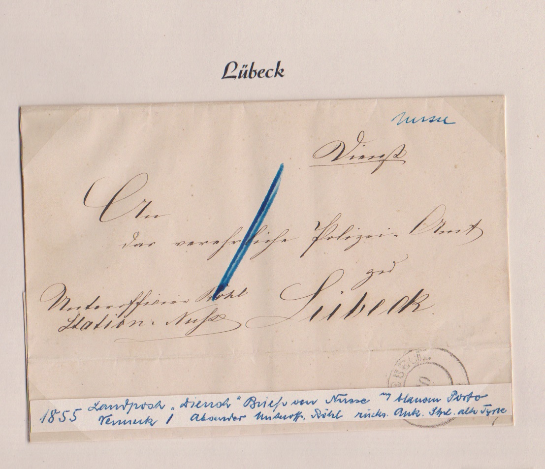 "Nusse", 1855/59, je handschriftliche Briefsammlungsaufgabe in untersch. Varianten auf zwei Briefen je nach Lübeck