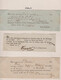 "Luebeck", 1849/50, je K2 auf zwei Auslandsbriefen nach Schweden, "Probe ohne Werth" nach Lund (Taxe "40 2/5"), sowie nach Saxkjöbing ("34")