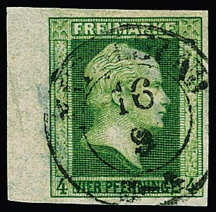 4 Pfge. grün, breitrandiges Kabinett-Randstück mit K2 "Stralsund"