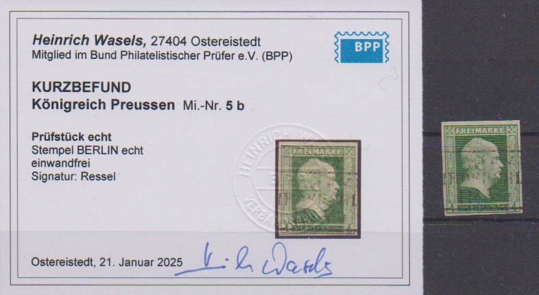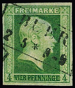 4 Pfge. grün und dunkelgrün, je gestempelte Kabinettstücke, sign. Meier bzw. "b" Fotoexp. Wasels. Mi. 300,-