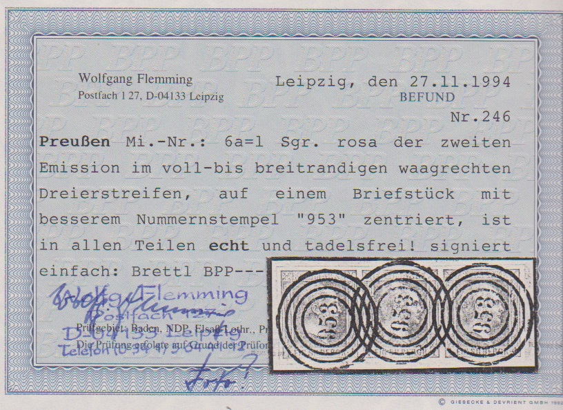 1 Sgr. rosa im Dreierstreifen auf Luxusbriefstück mit idealen NS "953" (Minden). Sign. Brettl und Fotoexp. Flemming