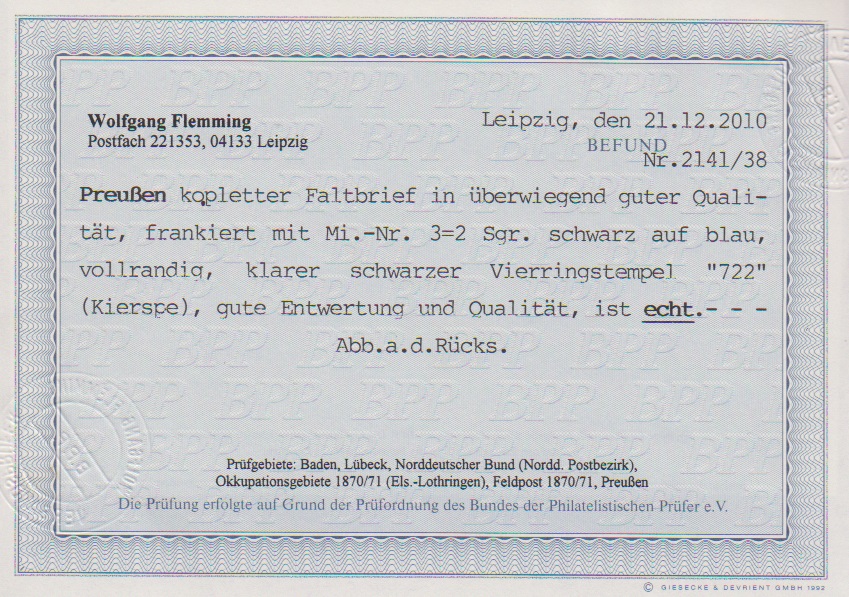 "777" (Laasphe) sehr klar auf 2 Sgr. (min. hell), sign. Flemming