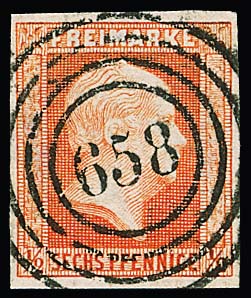 "658" (Hülsenbusch) klar zentrisch auf Kabinettstück 1/2 Sgr., guter Rheinland-NS!