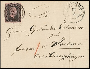 "548" nebst Ra2 "Grumbach" klar auf Brief mit 1 Sgr. (links etws in die Randlinie getrennt). Auf Brief sehr seltener NS aus der OPD Trier, Feuser + 1200,-, sign. Banker