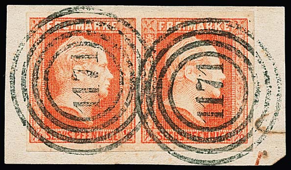"1020" nebst vorphil. K1 "Neumühl" klar auf Brief 1 Sgr. schw./lilarosa (unten angeschnitten). Auf Brief sehr seltener Rheinland-NS in der 1. Verteilung, nur noch ein weiteres Ganzstück (dieses ex Schneiders) bekannt. Feuser + 4000,-, Attest Wasels