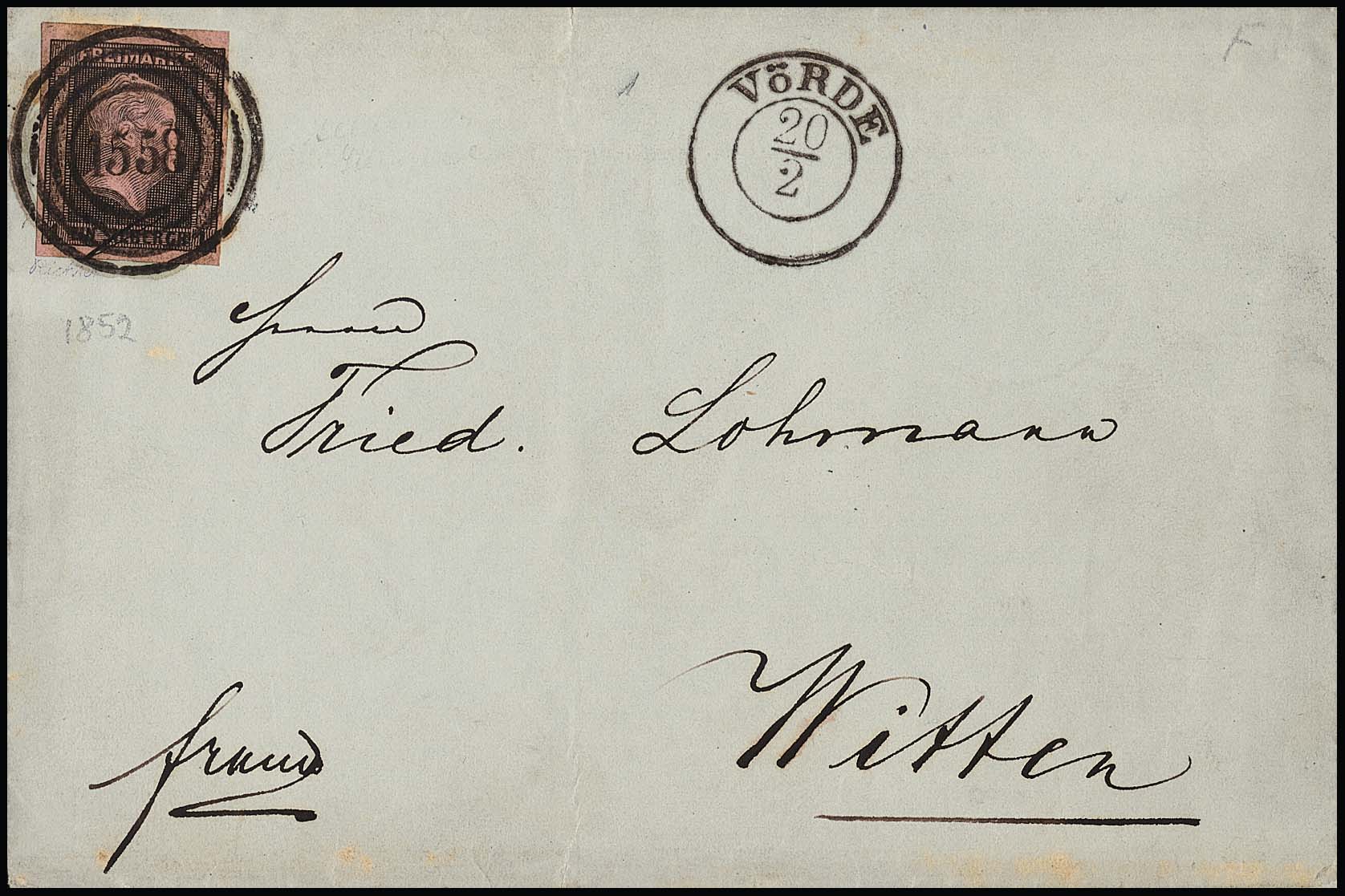"1558" (und kleine Federzug-Vorentwertung!) nebst K2 "Vörde" auf Prachtbrief 1 Sgr.