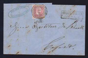 "1410" nebst Ra2 "Sondershausen" je klar auf Faltbrief mit Kabinettstück 1 Sgr. rosa