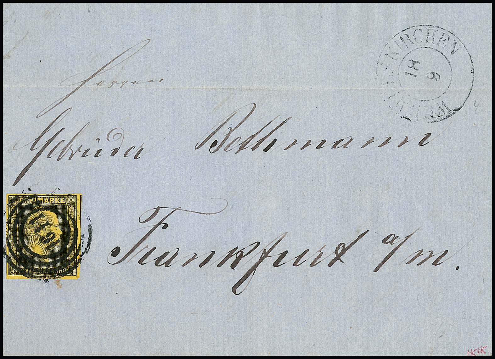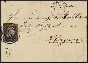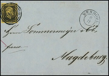 "1611" nebst vorphil. K2 "Wermelskirchen" klar auf Faltbrief mit Kabinettstück 3 Sgr. schw./dunkelgelb, sign. Krause