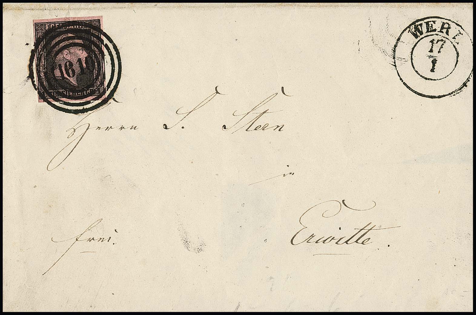 "1561" (Vreden) sehr klar und zentrisch auf Kabinettbriefstück 1 Sgr.