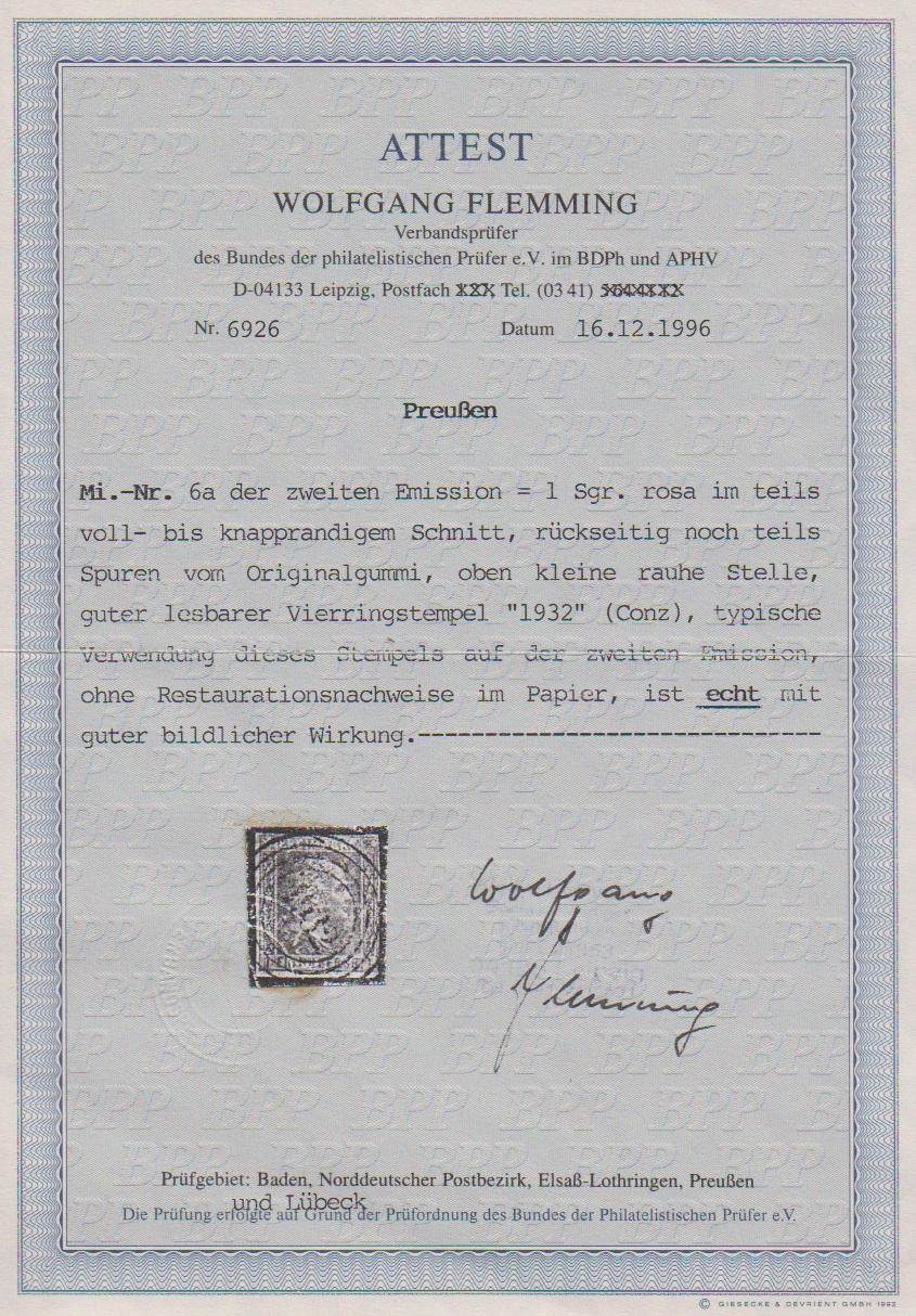 "1932" (Conz), seltener Mosel-NS auf 1 Sgr. (kleine Mängel), Attest Flemming. Feuser 300,-