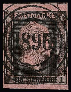 "1895" (Flötenstein) überfärbt, aber zentrisch, auf Prachtstück 3 Sgr., sign. Pfenninger, Kastaun. Feuser 300,-