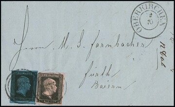 "1075" nebst vorphil. K2 "Oberkirchen" klar auf Kabinettbrief mit 1 und 2 Sgr. nach Bayern, Fotoexp. Flemming