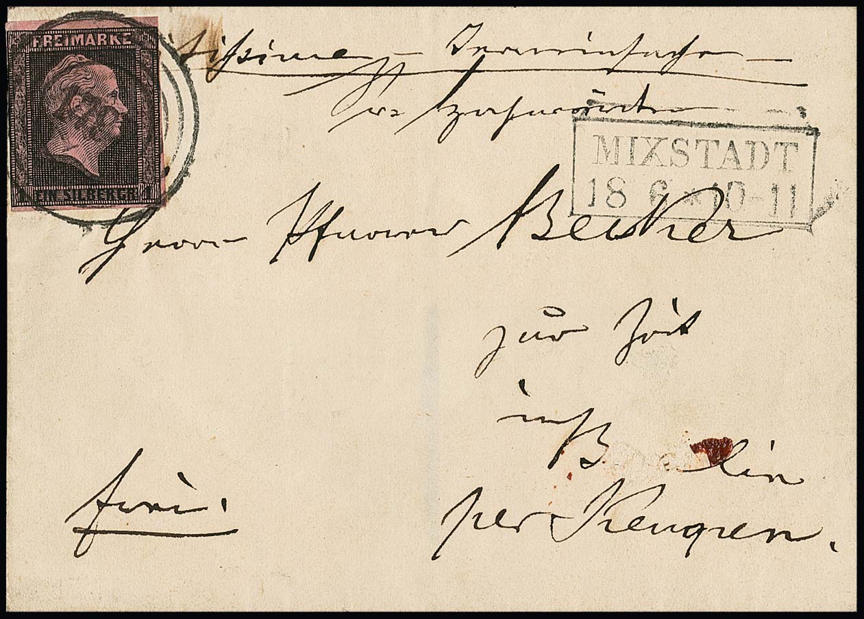 "1798" nebst Ra2 "Mixstadt" klar auf Brief 1 Sgr. (links teils auf Randlinie geschnitten). Seltener Nummernstempelbrief in der 2. Verteilung. Feuser + 1200,-