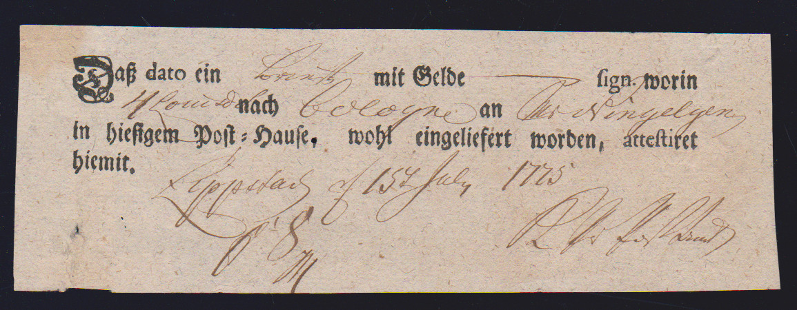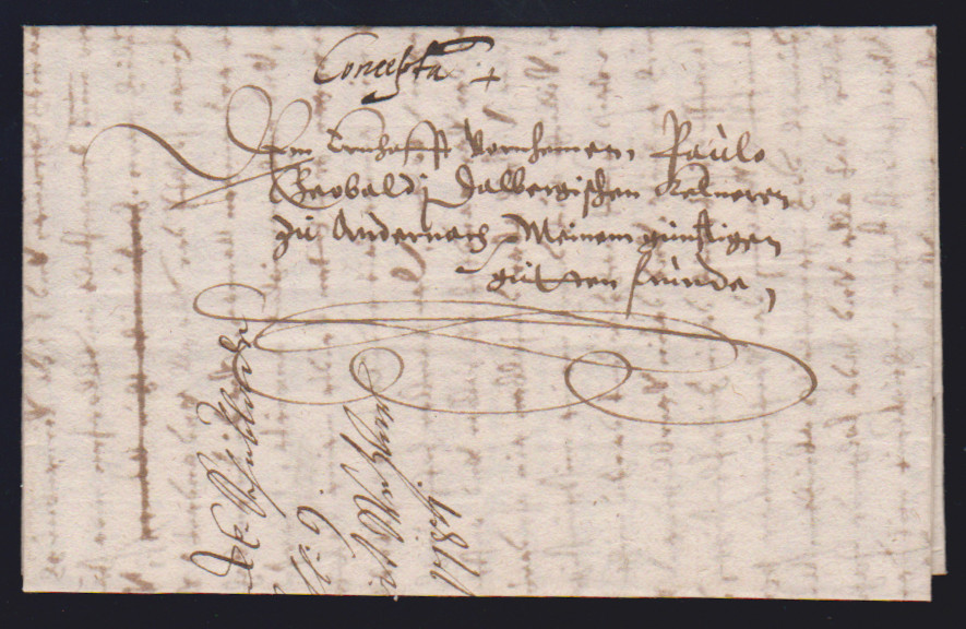 "Lessenich", 1625, Schnörkelbrief mit Inhalt nach Castellaun