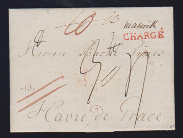 "Magdeburg", 1791, kleiner Luxusbrief nach Le Havre, hs. "Maseick" sowie leuchtend roter L1 "Chargé" und NB