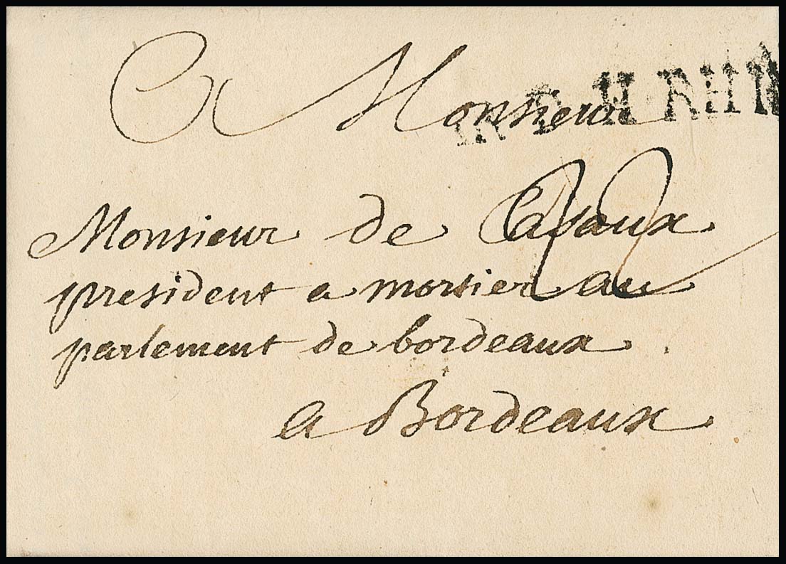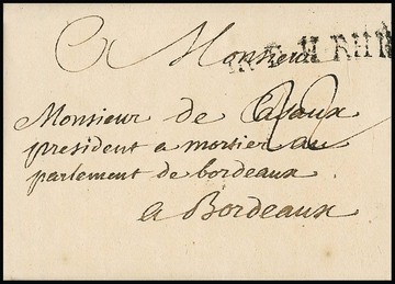 "Neuhaus", 1761, 4.7., hs. "au Camp de Neuhaus pres paderborn", seltener französischer Armeepostbrief aus dem 7-jährigen Krieg mit kpl. Inhalt und L1 "AR. D. H. RHIN" nach Bordeaux