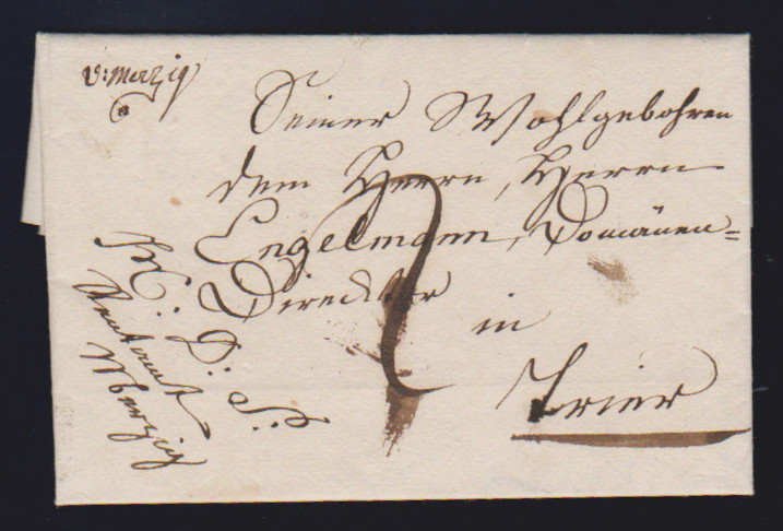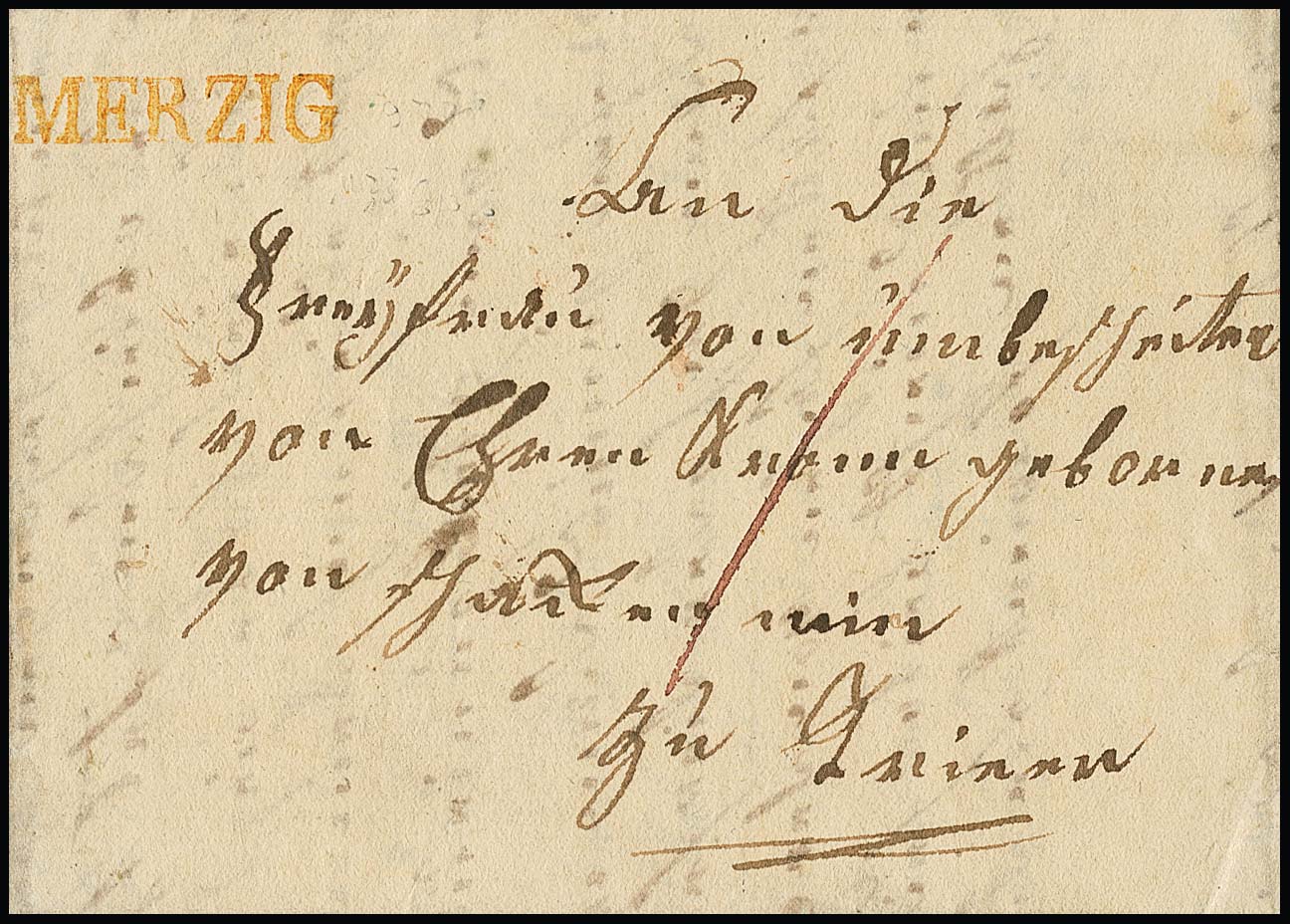 "Merzig", 1814, 29.11., "V. MERZIG" hs. auf kleinem Kabinettbrief nach Trier