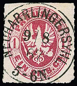 "Neuharlingersyhl", seltener neuer Grotesk-K1 sehr schön zentrisch auf 1 Sgr. (oben etwas Schere)