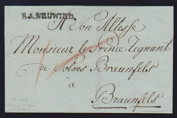 "Neuwied", 1803, Rayon-L1 "R.1. NEUWIED" auf datierbarem Adels-Trauerbrief nach Braunfels