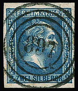 2 Sgr. dunkelblau, Plattenfehler "Schnupfnase", Luxusstück mit zentrischem NS "897" (Lügde). Es sind nur wenige Exemplare dieser Marke mit Nummernstempel-Entwertung bekannt, dieses ist eines der schönsten! Atteste Flemming, Kastaun