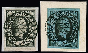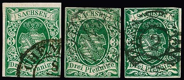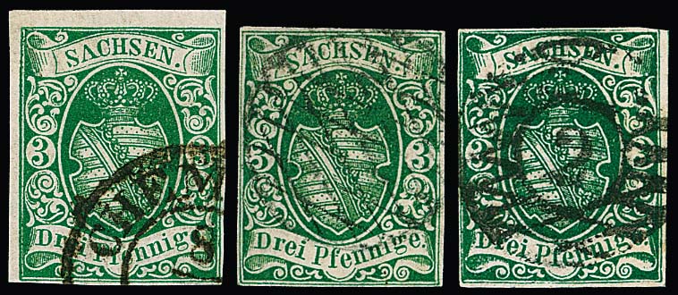 Gebiet ungebraucht komplett (!), einige wenige Werte auch postfrisch, der "Sachsen-Dreier" allseits vollrandig mit großen Gummiteilen (nicht sicher als Originalgummi nachweisbar, kleine helle Stellen, Attest Vaatz), Nr. 2II und 5 ohne Gummi. Seltenes Angebot!