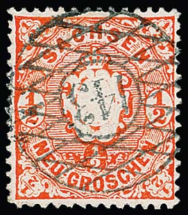 "143" (Brambach) zentr. klar auf Luxusstück 1/2 Ngr. Wappen, Milde 250,-