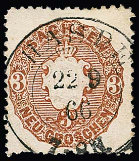 3 Ngr. rötlichbraun, üblich gez., mit seltener Fremdentwertung durch Preußen-K2 "Haspe"