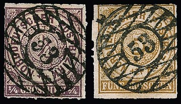 "53" (Meerane) je klar zentrisch nachverw. auf NDP 1/4 Gr. (hierauf selten!) und auf 5 Gr.